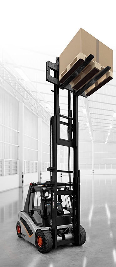 The forklift is equipped with two high-speed traction motors with high-reduction gear boxes to provide high productivity.