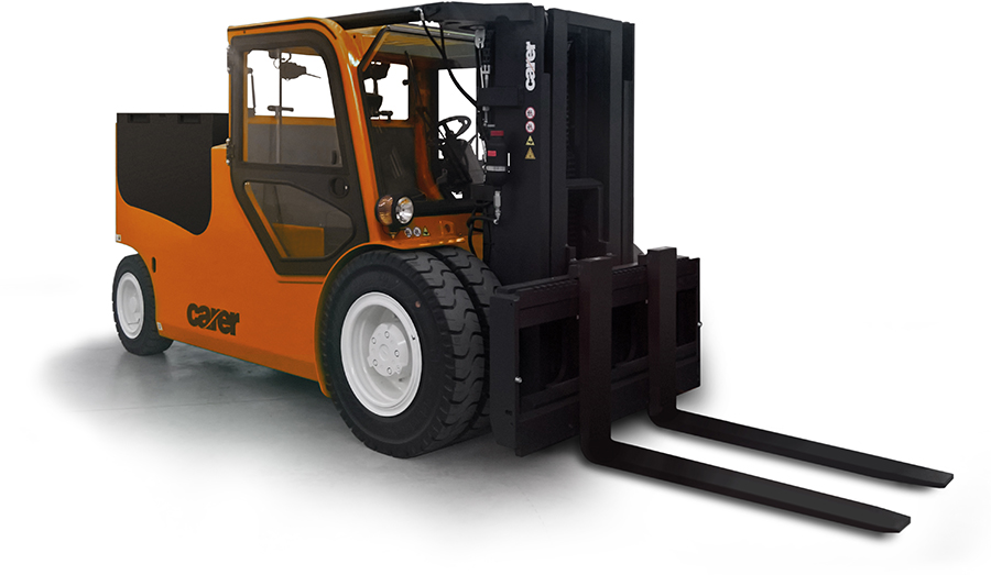 I carrelli Carer montano un robusto assale che consente di ottenere elevatissimi angoli di sterzatura.
