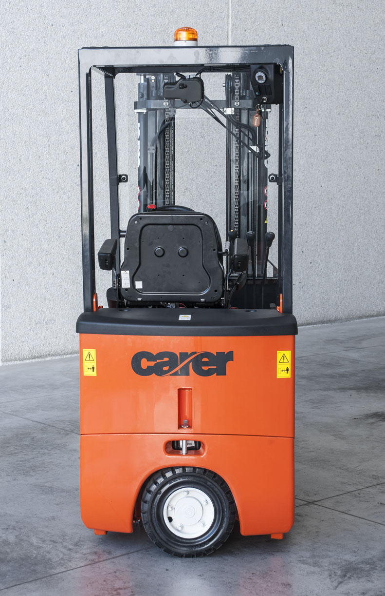 Larghezza del carrello di soli 85cm, tensione 48V, 2 motori di trazione a corrente alternata AC, sterzo elettrico, ruote posteriori superelastiche gemellate: sono alcune delle caratteristiche che rendono i carrelli CARER della serie N08-10 i più avanzati del settore.