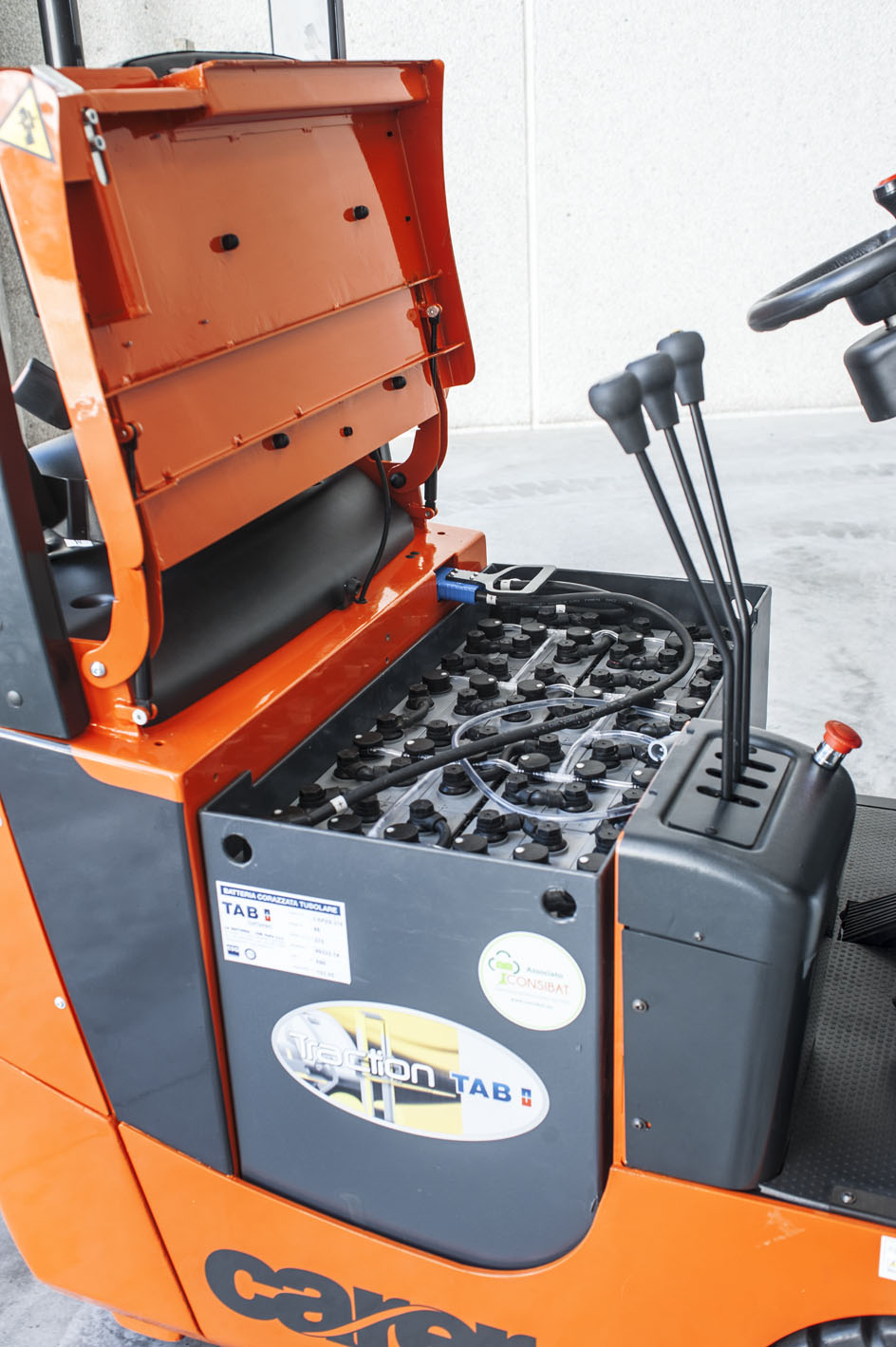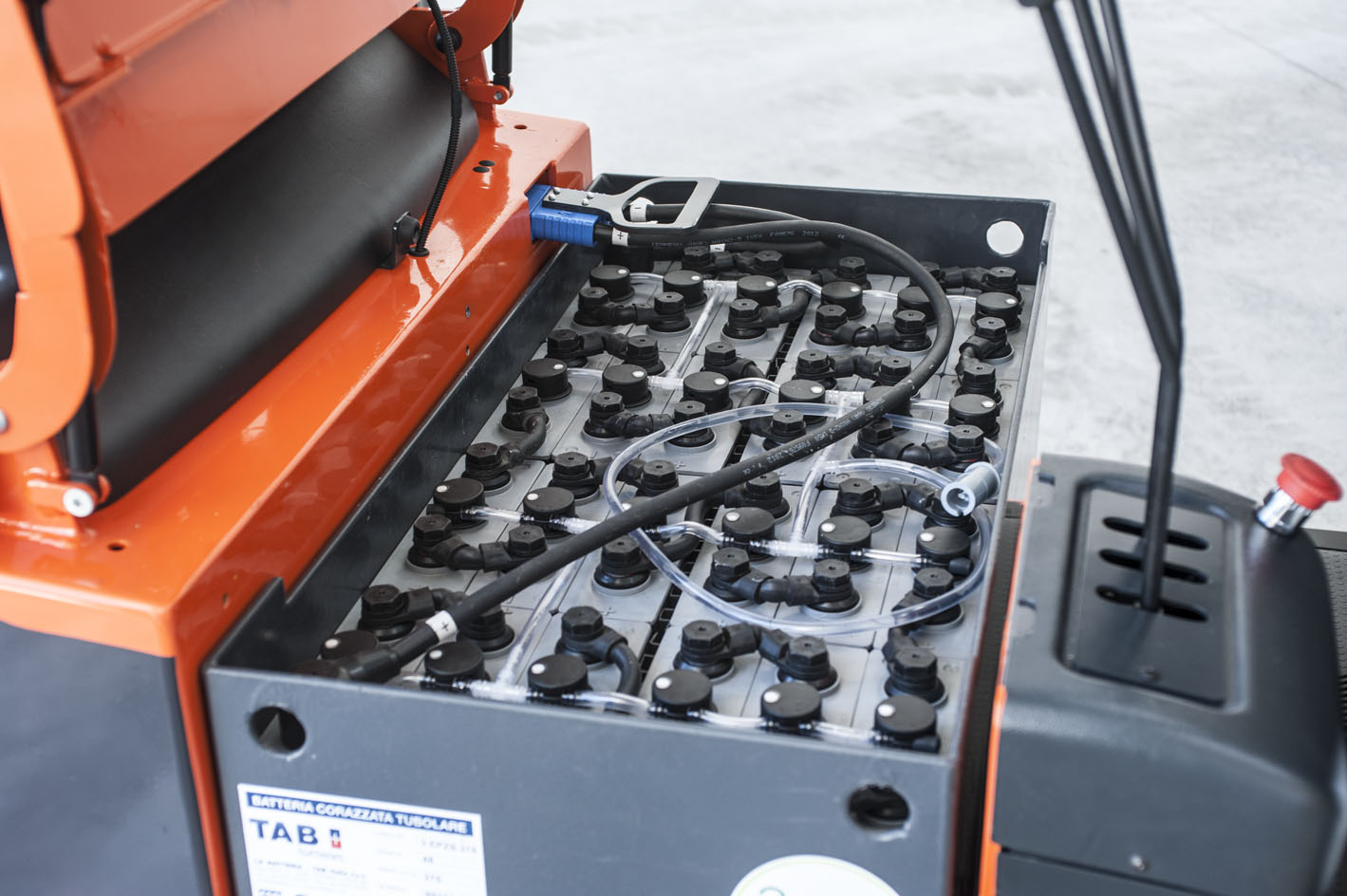 La batteria con capacità fino a 375 Ah e il sistema di recupero di energia consentono prolungate autonomie di lavoro riducendo gli intervalli per la ricarica.